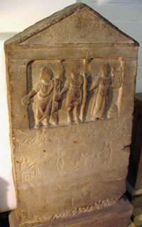 The inscription in the triangular shape at the top reads as follows: “To Zeus Hypsistos and the place. Thallos, eponymous official, dedicated this relief.”